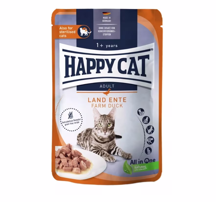 Kjøtt og innmat (inkludert 30 % fjærfe, hvorav 10 % and), derivater av vegetabilsk opprinnelse (inkludert eplefiber 0,3 %), mineraler, frø (inkludert linfrø 0,03 %), inulin (0,1 %)